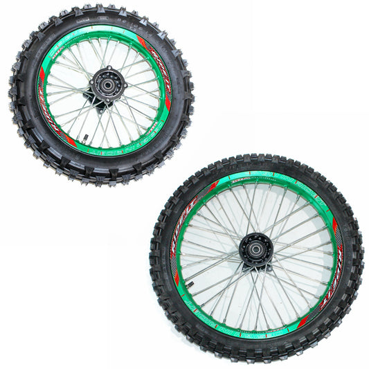 GREEN 15mm 17 Inch Front 14 inch Alloy Rear Wheel Rim Tyre Tire PIT Dirt Bike