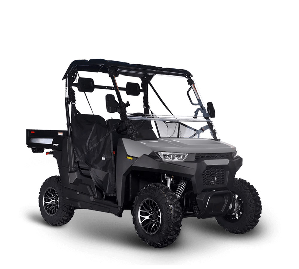 With its compact yet robust design, it offers a balance of utility and ease of handling, making it an excellent choice for those new to UTVs or those seeking an affordable, reliable workhorse for daily tasks. Powered by a 177.3 cc single-cylinder, 4-stroke engine, the 200GT provides 12 horsepower and a maximum speed of ~50 km/h, ensuring that you can cover your property efficiently without sacrificing comfort. Its dual A-arm independent front suspension and swing-arm dual shocks at the rear provide a smooth ride over uneven terrain, while the hydraulic disc brakes offer reliable stopping power. The 200GT also features a practical transmission with Forward, Neutral, and Reverse (F-N-R) gears, allowing for easy manoeuvrability on smaller plots of land.