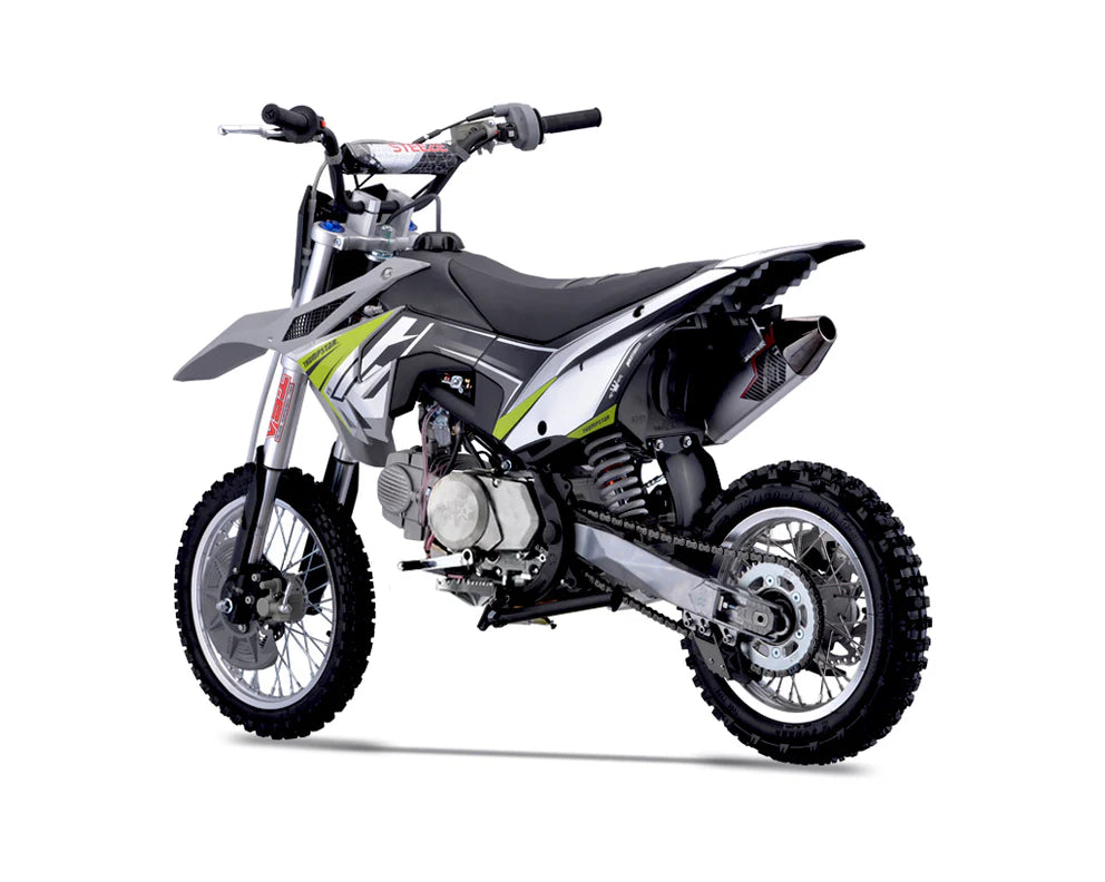 Our design team has produced a piece of engineering art. The frames are a new Quad Bar which has made them stronger than ever. Along with the frame developments we made space and rigged them with mounts to accommodate our new caged airboxes. This allows a better air filtration system while increasing airflow into the carburetor and in turn more horsepower. A first on pit bikes and minibikes alike, we have scaled down the linkage from the likes of a full-size race bike and fitted it to these smaller sized 110s. The linkage provides a much smoother ride than traditional PDS style suspension which allows for faster cornering, high and low speed adjustments, and increased rider comfort. We have redesigned our hubs and created space for a much heavier duty 20mm rear axle, coupled with stainless spokes and alloy rims, which provide our strongest wheels to date. Check out our description video and the following spec lists to see these upgrades!