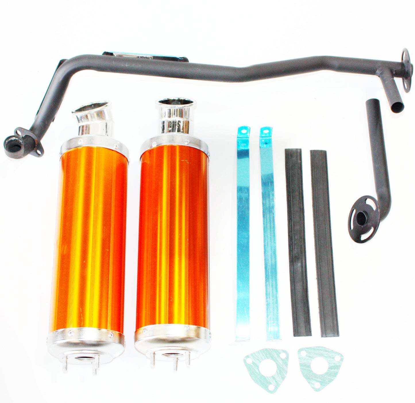 Brand New Twin Exhaust Pipe + Alloy Mufflers 110cc 125cc BULL Style Farm Quad Dirt Bike ATV Go Kart Dune Buggy